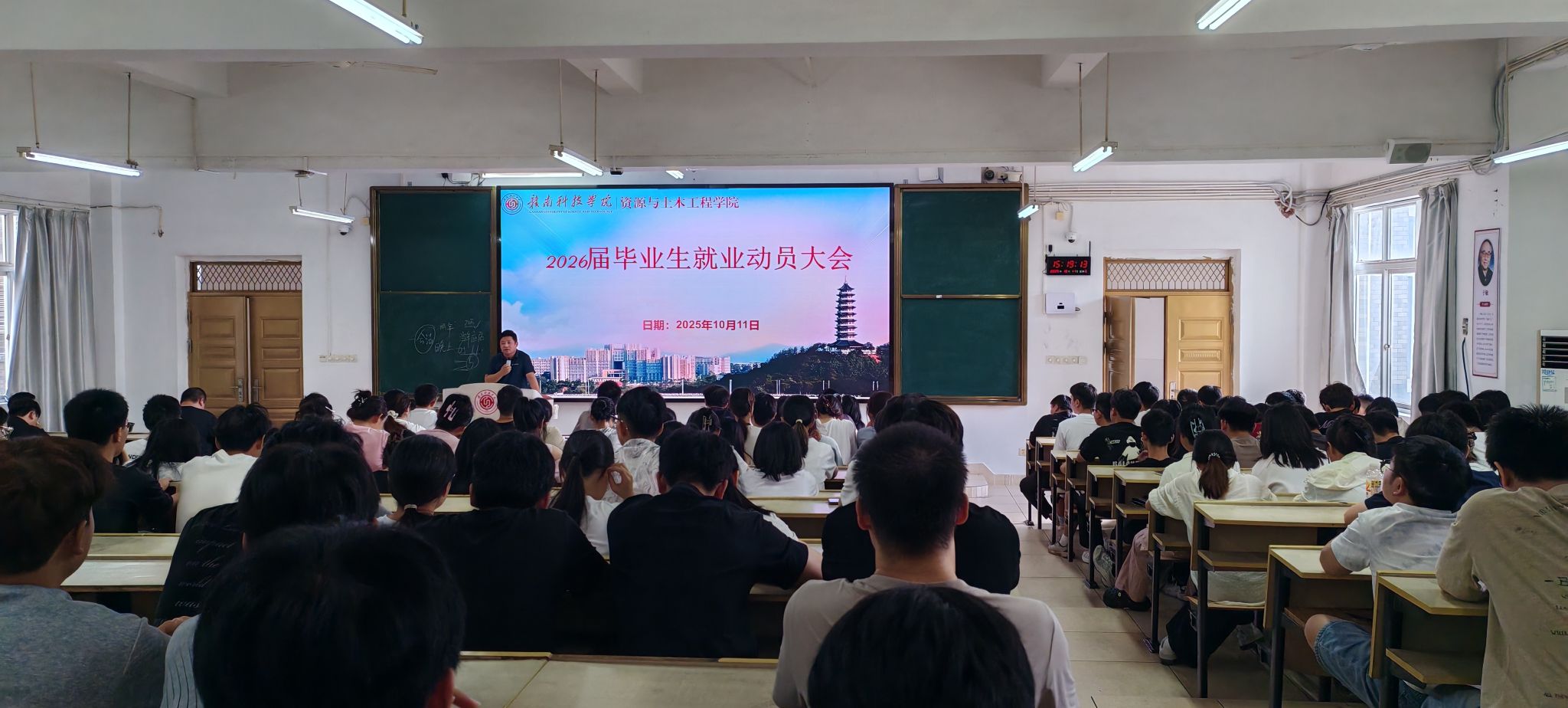 本网讯:为帮助2026届毕业生认清就业形势、树立科学就业观念、明确就业准备方向,10月11日,资源与土木工程学院在崇善楼Z1D1举办2026届毕业生就业动员大会。学院学生工作办公室主任涂黎明,毕业班辅导员刘波、邱麟惠及学院2026届全体毕业生参会。