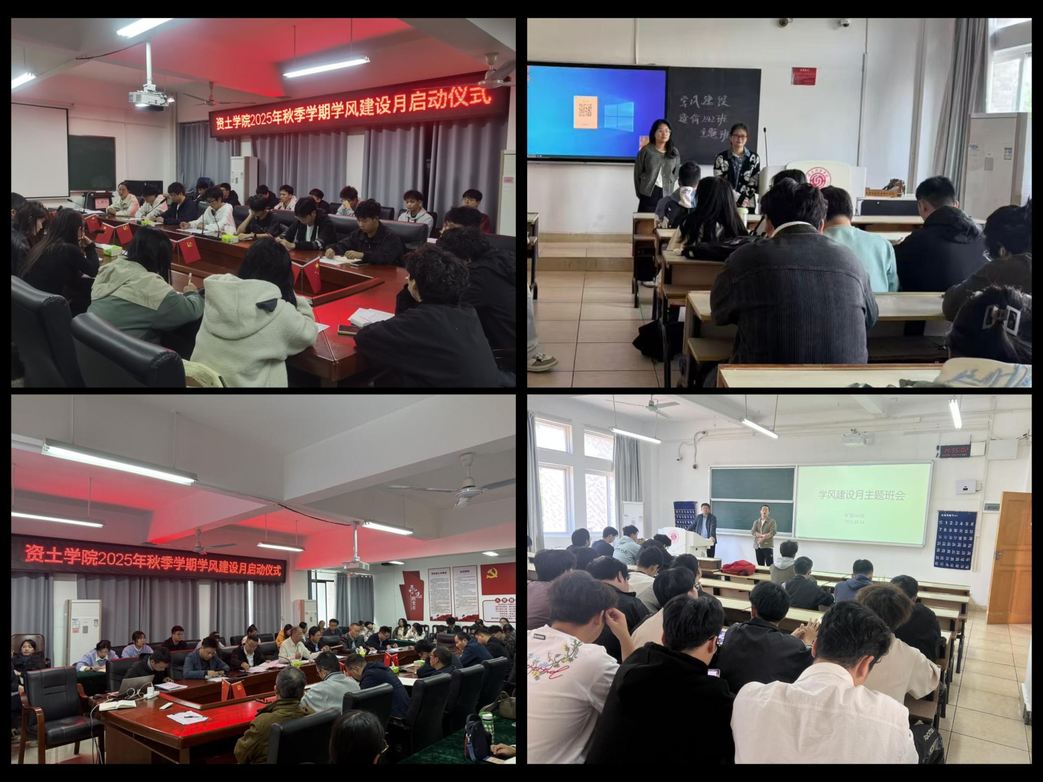 本网讯:为响应学校学风建设月活动号召,进一步完善优化学风建设体系,激发学生学习积极性与主动性,营造浓厚学习氛围,构建学风建设长效机制,全面提升人才培养质量与水平,10月21日,资土学院举行2025年秋季学期学风建设月启动仪式,学院全体教师和学生代表参会。10月21日-27日,各班级进一步召开学风建设主题班会,夯实学风建设基础。