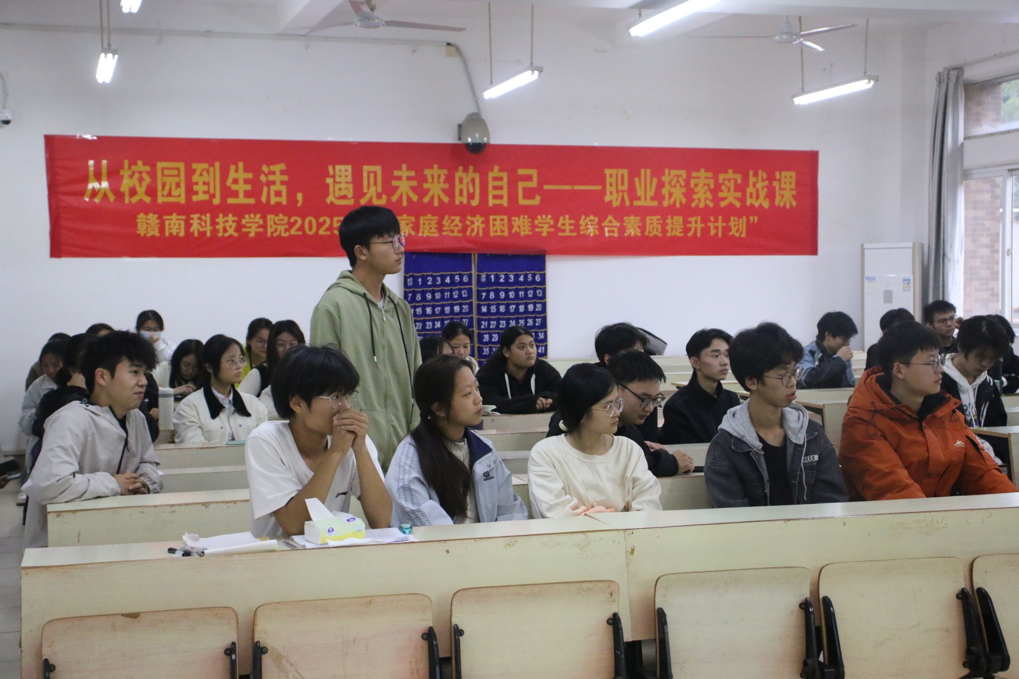 本网讯:为帮助大一新生明晰职业方向、搭建校园与职场衔接桥梁,12 月2 日下午,资源与土木工程学院“从校园到生活,预见未来的自己”职业生涯规划讲座暨2025年“家庭经济困难学生综合素质提升计划”活动在崇善楼 Z117 举行。2006级校友、江西鑫立项目咨询管理有限公司总经理李信重返母校,为新生带来精准实用的职业赋能分享。