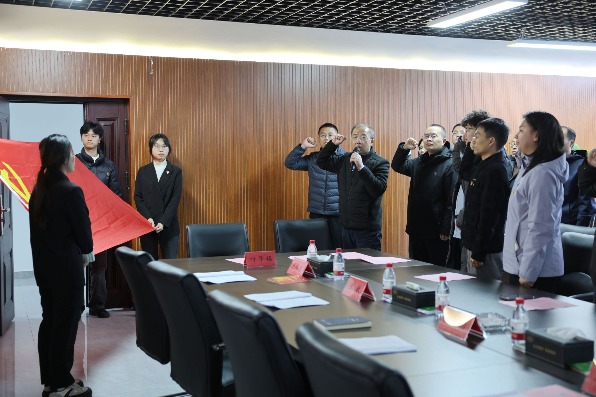 之后,全体党员重温了入党誓词,为向剑、张勉羚、何善晶、袁鹏程4位同志过“政治生日”,在庄重仪式中强化党员身份意识与责任担当。交流研讨环节,伍文凯、伍康平、张超美、刘辉同志结合本次活动主题与自身工作学习实际,分享学习体会。