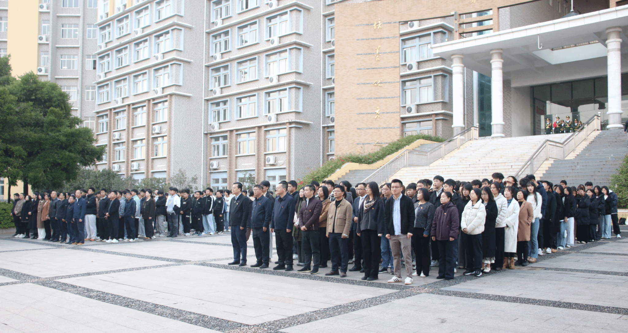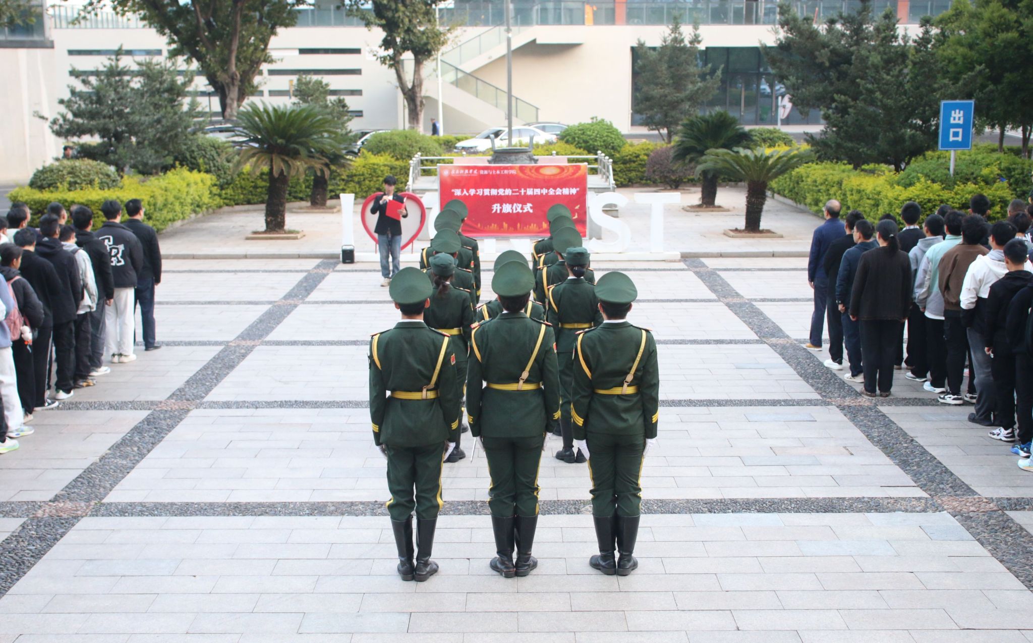 本网讯:11月24日清晨,资源与土木工程学院在崇善楼北门广场举行“深入学习贯彻党的二十届四中全会精神”主题升旗仪式。马克思主义学院院长梁健及教师代表、资源与土木工程学院党委书记刘俊峰及领导班子、全体辅导员、入党积极分子、青马班成员共计200余人参加此次升旗仪式。