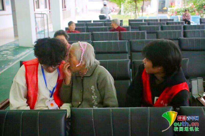 图为志愿者与老人交流谈心。田思蕊 供图