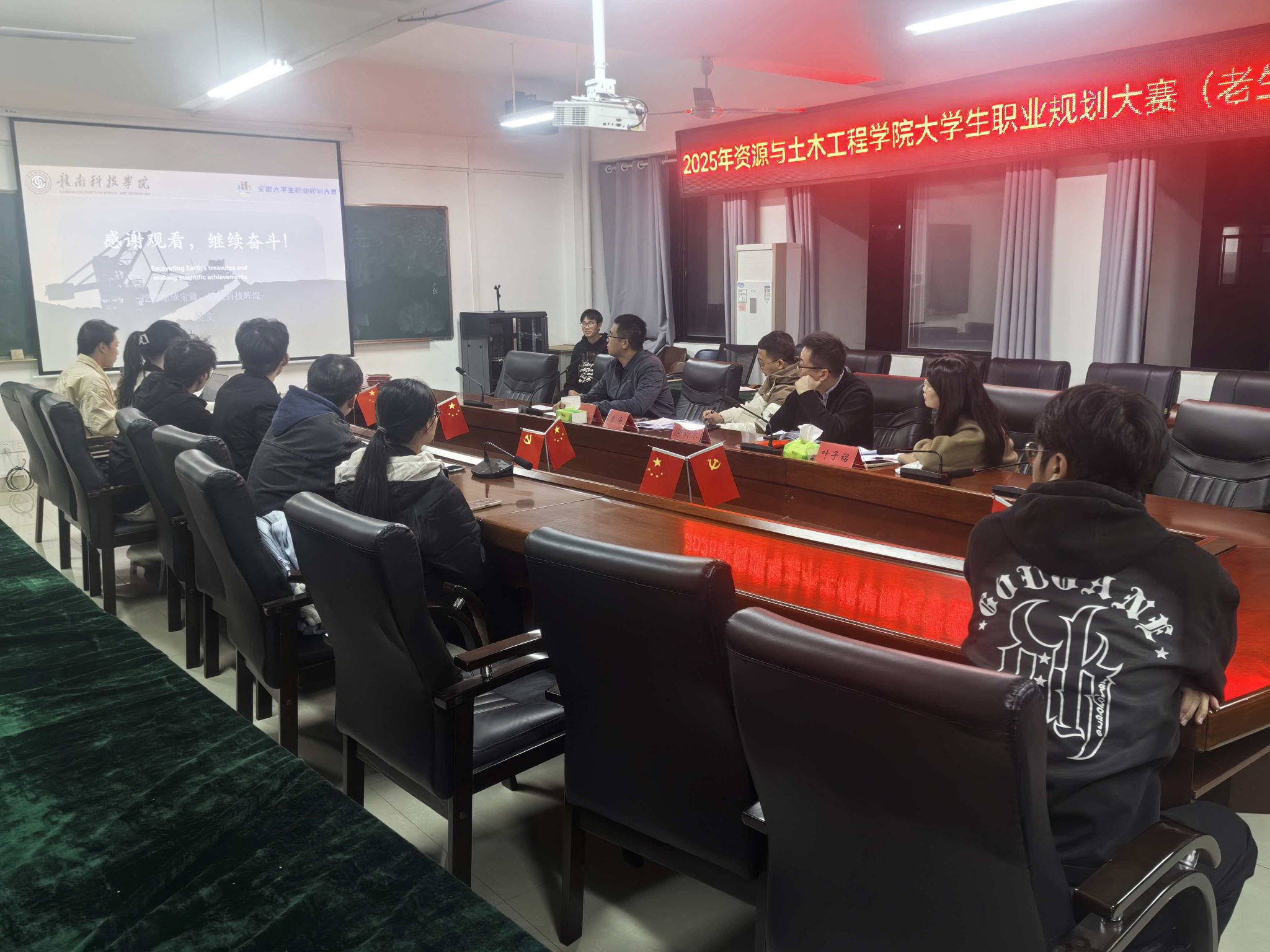 本网讯:为进一步强化学生职业发展意识,提升就业竞争力,落实学校“就业育人”工作要求,11月28日,资源与土木工程学院大学生职业规划大赛在逸夫楼A505顺利举办。经过前期班级推荐、院级初选脱颖而出的7名选手同台竞技,展现资土学子对职业发展的清晰规划与青春担当。