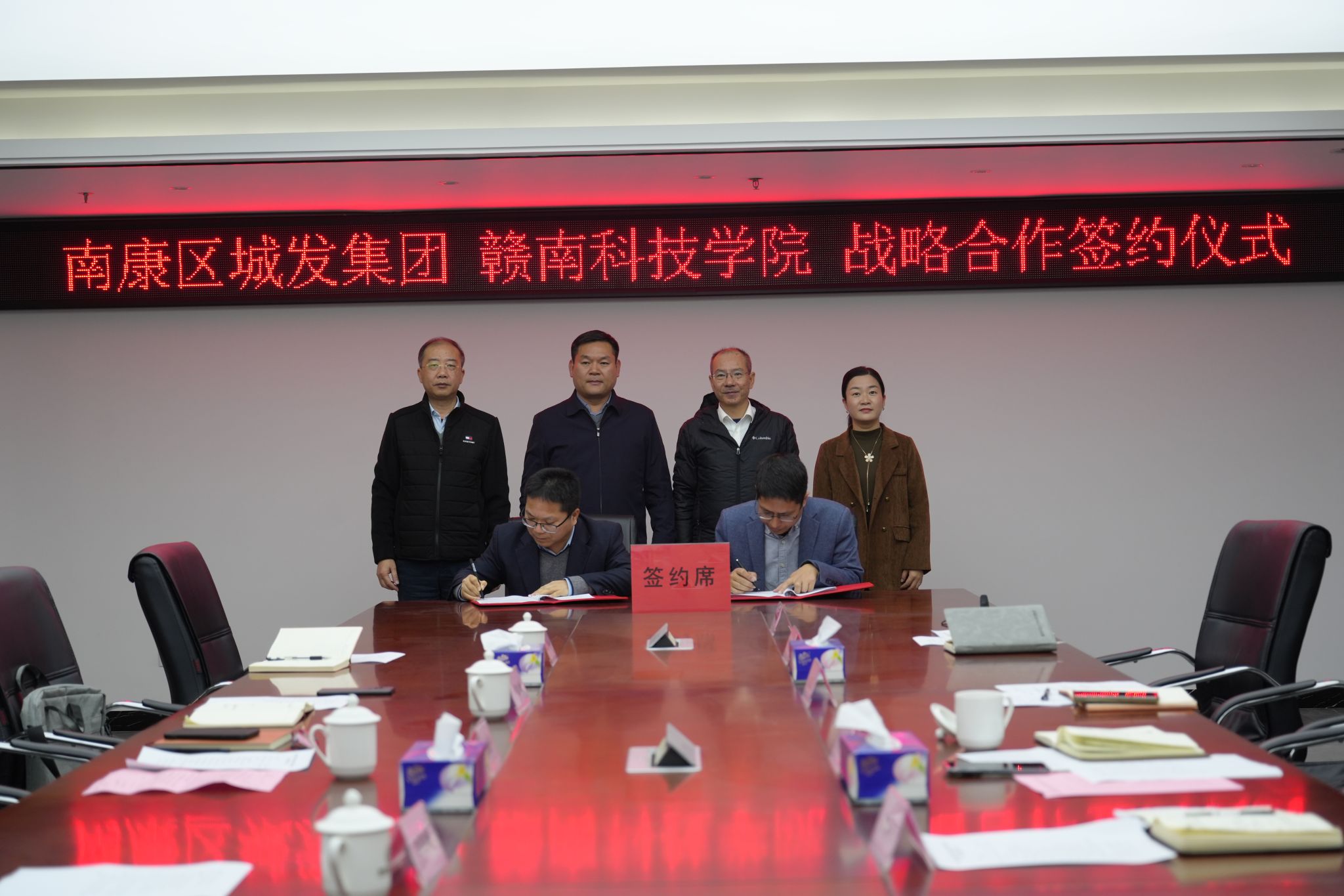 本网讯:12月30日,我校与南康区城发集团战略合作签约暨实习实践基地揭牌活动在南康区金融中心2号楼9楼会议室顺利举行。南康区城发集团党委书记、董事长刘康明,我校科技处处长张耀平出席活动并致辞;南康区城发集团风控总监曾春艳,我校资源与土木工程学院党委书记刘俊峰、副院长卢志刚等出席仪式。